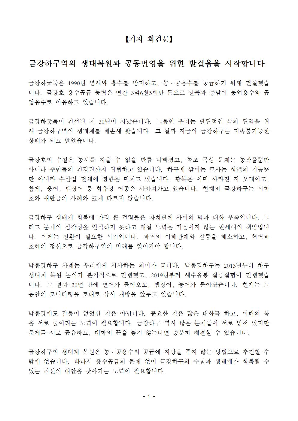 강과 바다는 다시 만나야 합니다. 새만금 해수유통을 넘어, 단절시켜놓은 금강하구를 되살리는 길에 관심 가져주시고, 함께 해주세요_()_