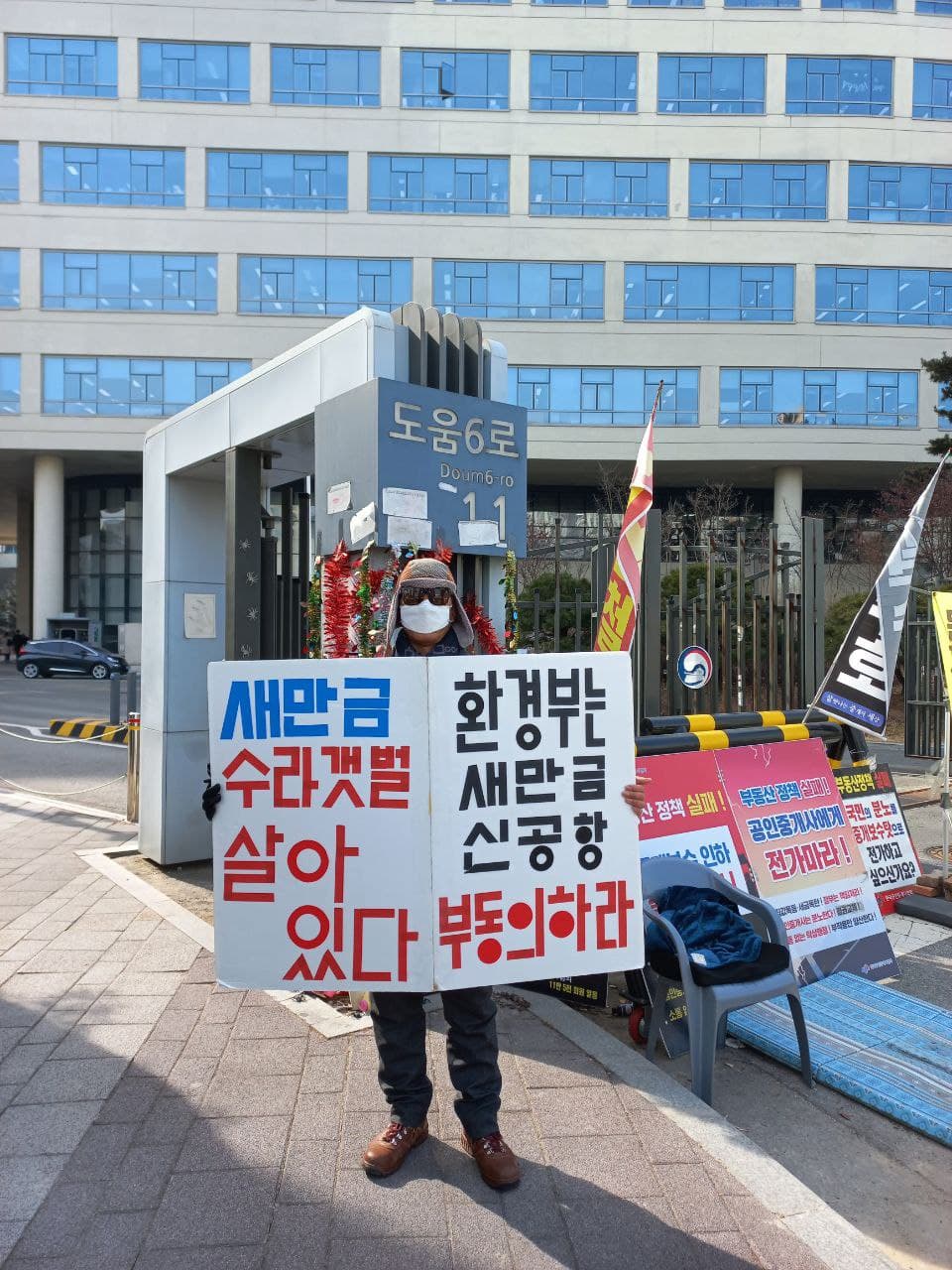 ‘새만금신공항 환경부 부동의 촉구 3차 천막농성’ 2일차에는 어제 밤 농성장을 지키신 평화바람 구중서 사무국장의 아침 선전전에 이어 새만금신공항백지화공동행동 김연태 공동대표님이 애써주시고 내일 아침까지 이어가십니다.