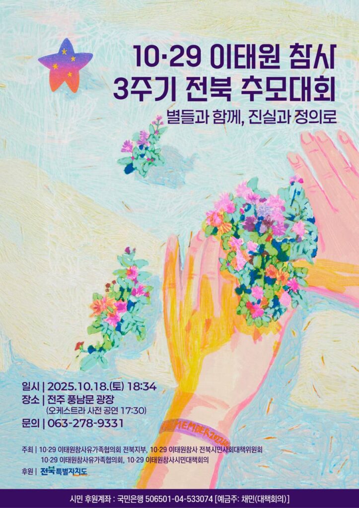 오후 6시 34분에는 10.29 이태원 참사 3주기 전북 추모대회가 있습니다. 많은 분들의 관심과 참여 부탁드립니다.