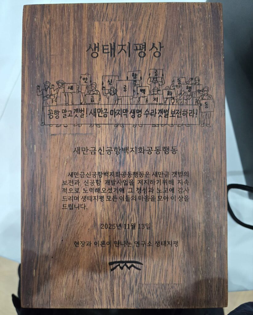 11월 13일 새만금신공항 백지화공동행동이 소중한 상을 받았습니다! 생태지평연구소에서 생태지평상을 주셨어요.^^
