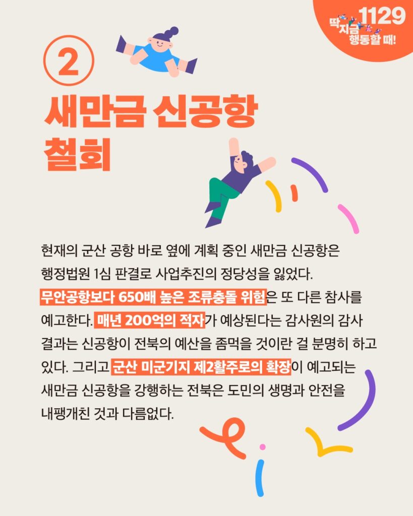 그리고 군산 미군기지 제2활주로의 확장이 예고되는 새만금 신공항을 강행하는 전북은 도민의 생명과 안전을 내팽개친 것과 다름없다.