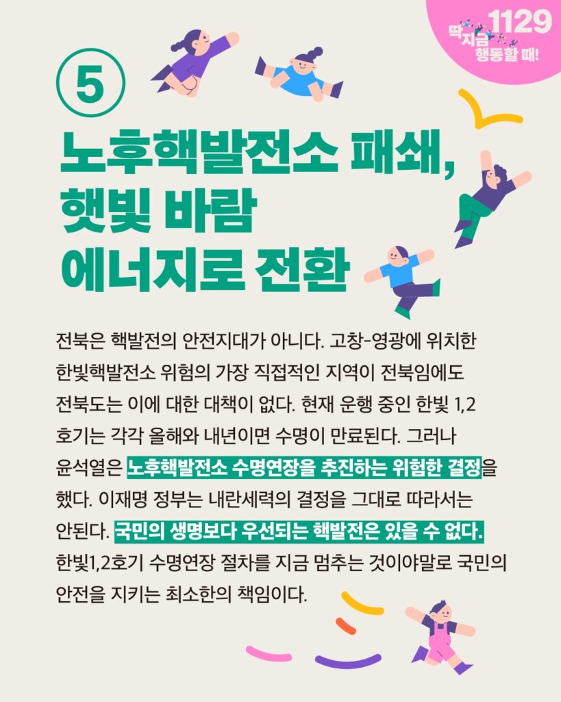 ⑤노후핵발전소 패쇄, 햇빛 바람 에너지로 전환