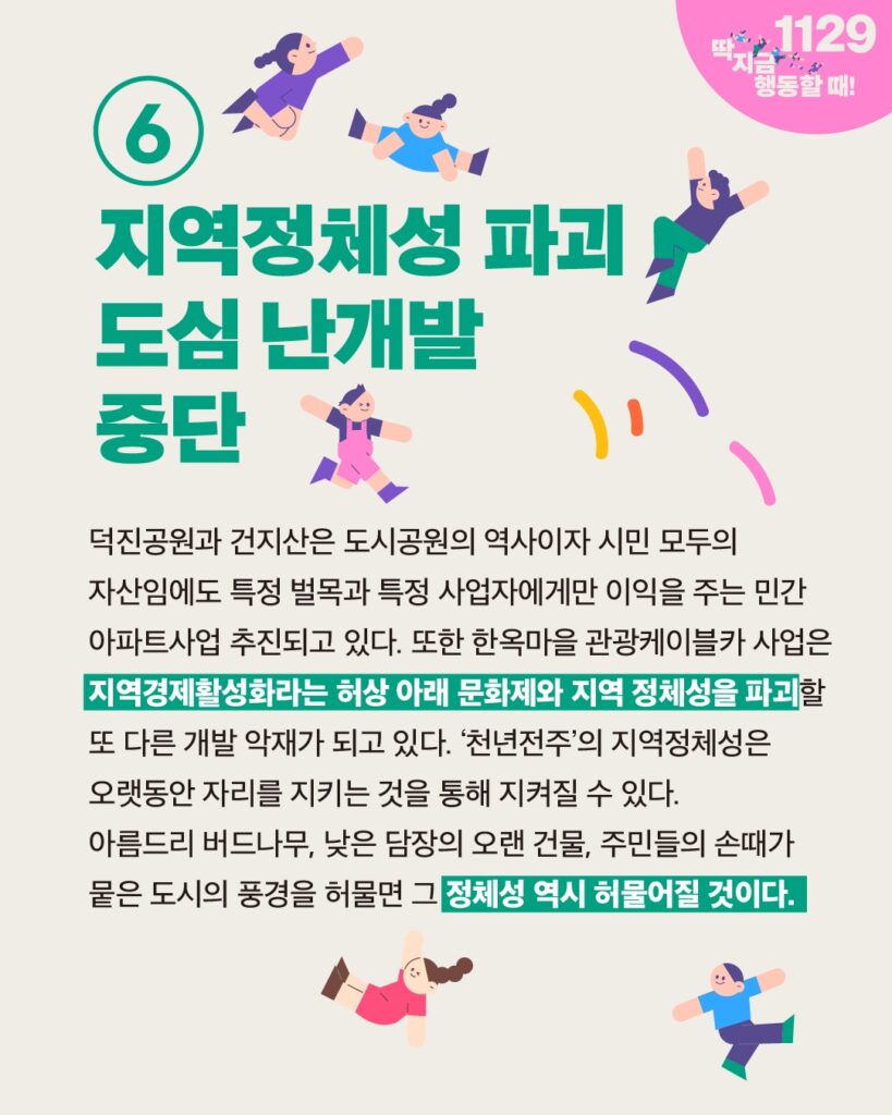 또한 한옥마을 관광케이블카 사업은 지역경제활성화라는 허상 아래 문화제와 지역 정체성을 파괴할 또 다른 개발 악재가 되고 있다.