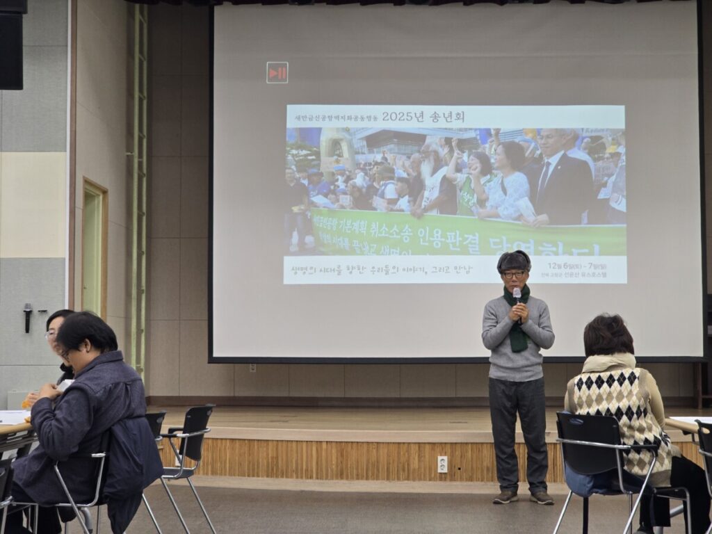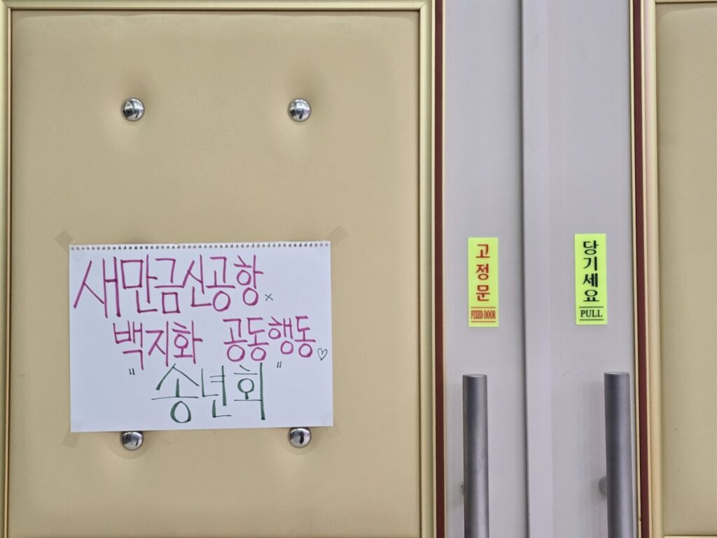 새만금신공항 백지화공동행동 2025년 송년회 잘 마쳤습니다. 해고라는 힘든 시기 속에서도 기꺼이 송년회 준비위원장을 맡아주신 강형석 님, 바쁘신 와중에 열심히 준비팀으로 애써주신 김명이·김은실·김희진·박은서·딸기 님 덕분에 1박 2일 동안 공동행동의 활동과 투쟁에 대한 태도와 마음에 대해서도 고민해볼 수 있는 시간이었습니다. 게임 시간도 넘 재밌어서 오랜만에 많이 웃었어요. 맛있는 비건 식당 찾아서 예약하는 일이 쉽지 않은 일인데, 함께 나눈 세 끼의 식사 모두 참으로 맛있고 귀한 식사였습니다. 겨울의 고요한 운곡 람사르습지를 함께 걸었던 시간도 참 좋았습니다. 수라갯벌도 람사르 습지로 등록해봅시닷. 아자아자!!!