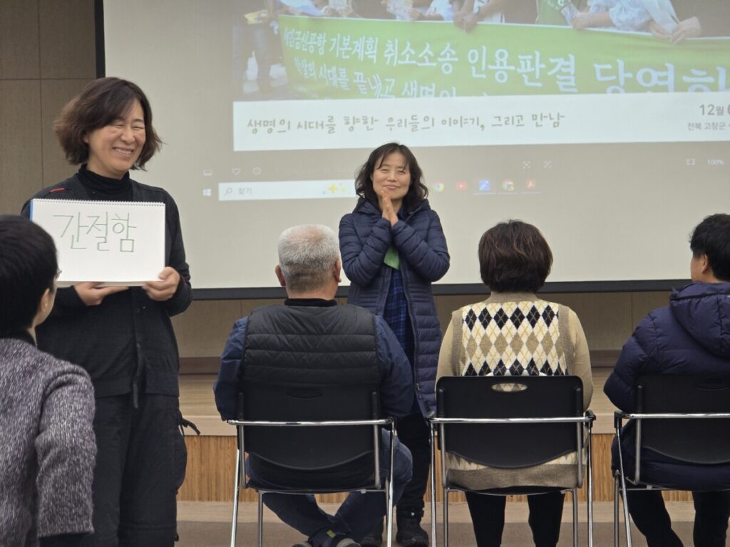 더불어 고창까지 오가는 일이 번거로웠을 텐데 먼 길 오셔서 함께 하신 모든 동지들 고맙습니다. 새만금신공항을 막아내고, 수라갯벌을 지키고자 하는 간절한 마음과 의지, 그리고 사랑이 느껴졌어요..