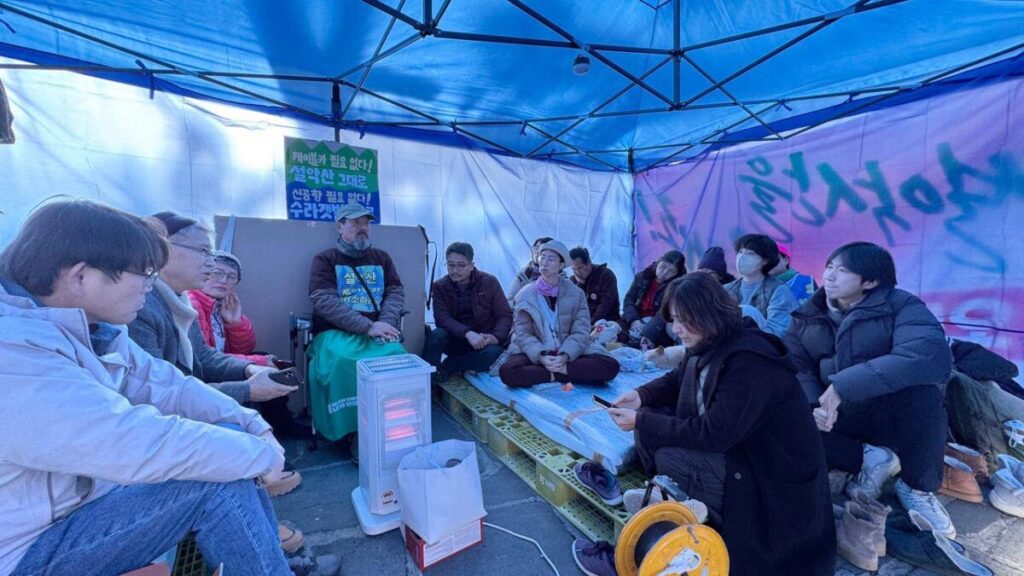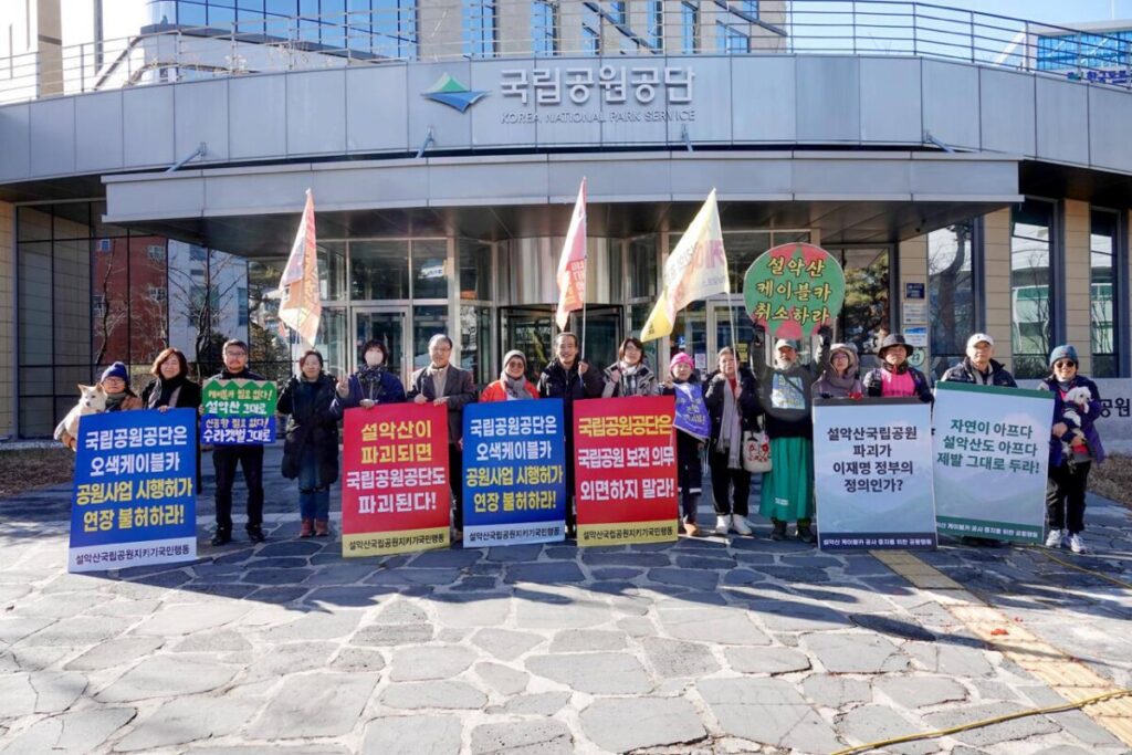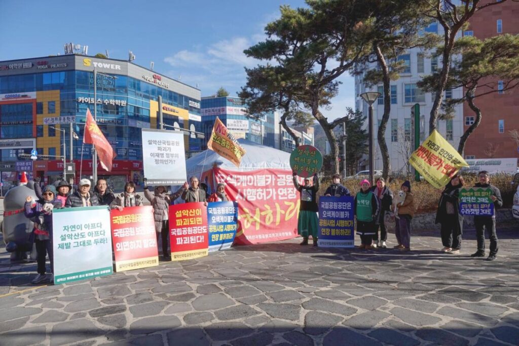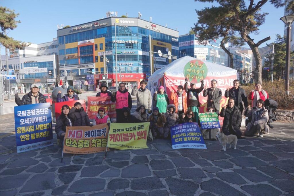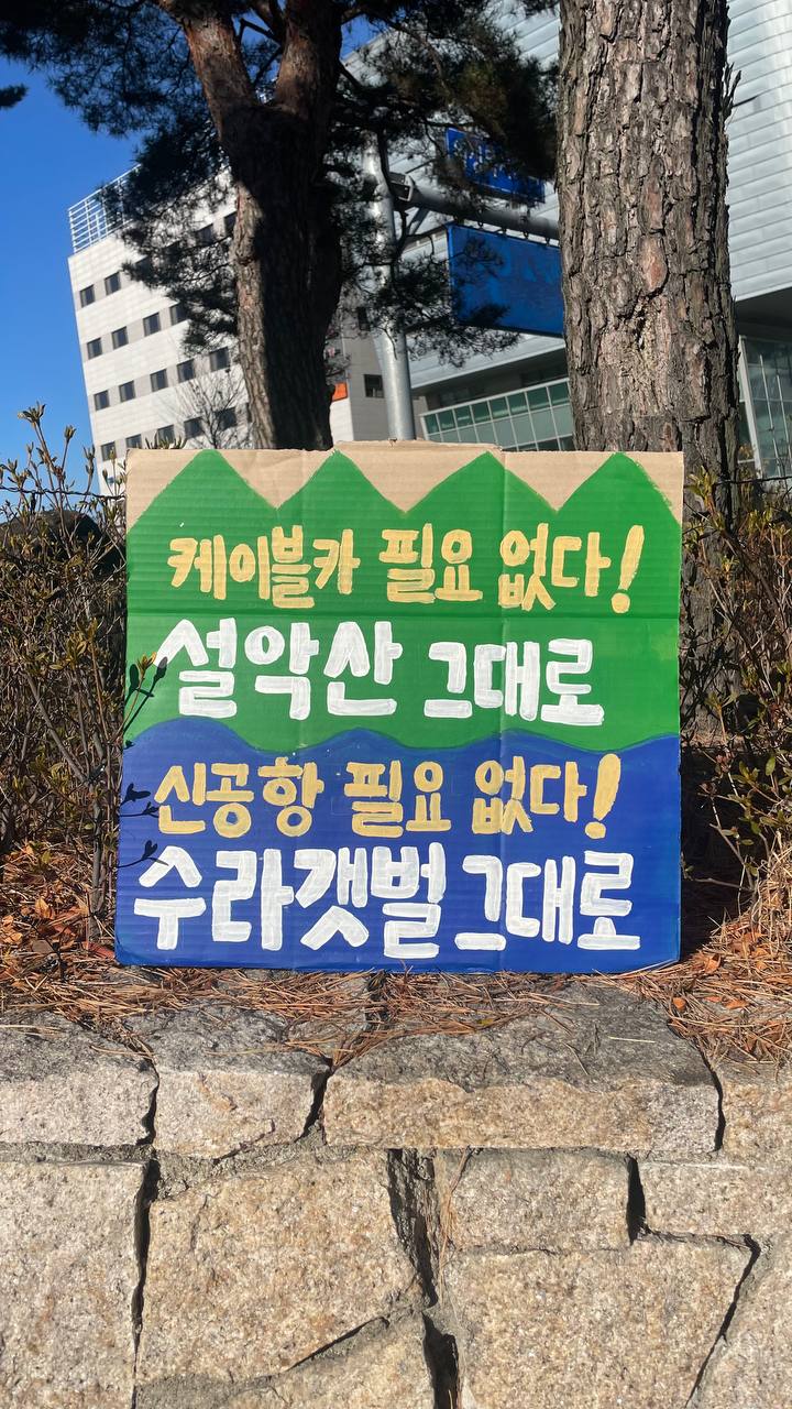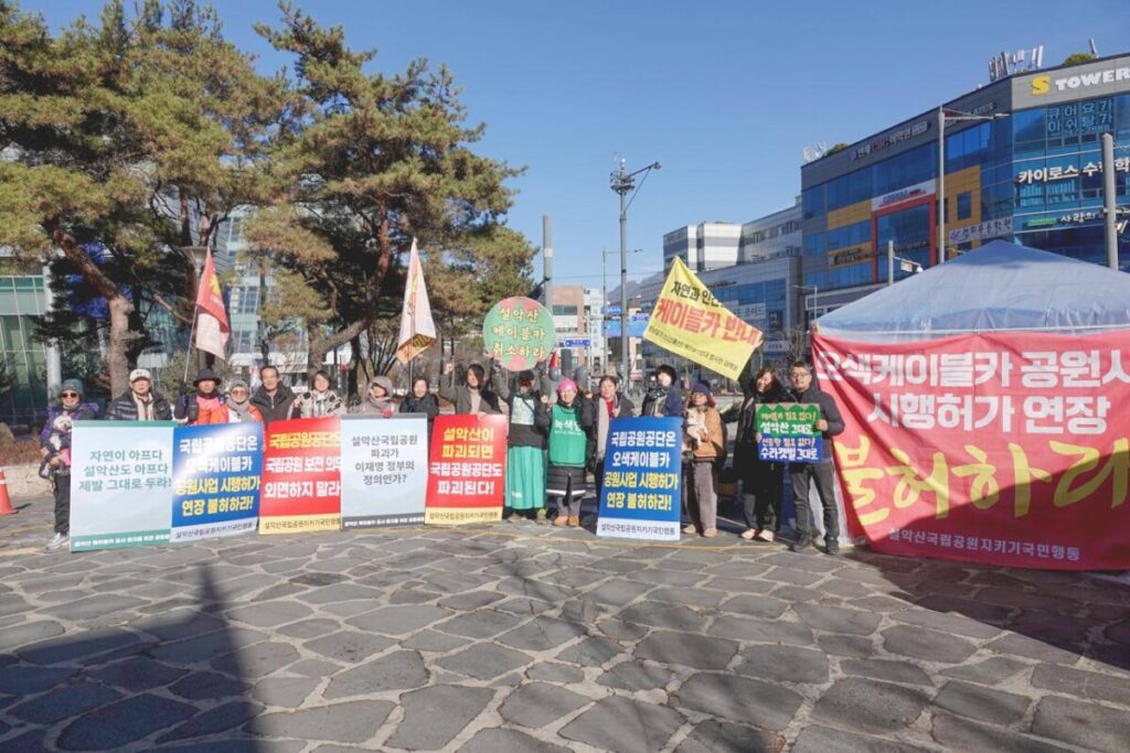 새만금신공항백지화공동행동은 원주 국립공원공단 앞 설악산 케이블카 반대 농성장에 다녀왔습니다.