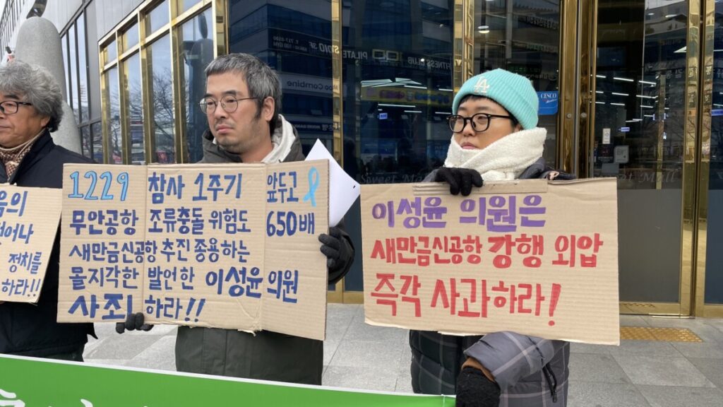 특히 이성윤 의원의 발언은 시기적으로도 용납될 수 없다. 2024년 12월 29일 제주항공–무안공항 참사로 179명의 생명이 희생된 이후, 항공 안전과 조류충돌 위험에 대한 사회적 경각심이 극도로 높아진 상황이었다. 그럼에도 이 의원은 기만적 발언으로 신공항 강행을 정당화했다. 무안공항 참사의 희생자와 유가족들에게 정말 해서는 안되는 망언을 한 것이다.