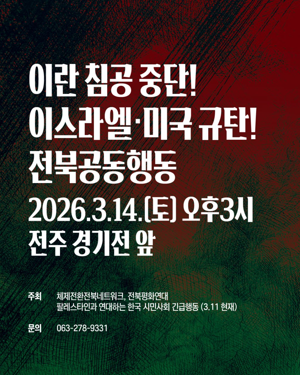 전북평화연대, 체제전환전북네트워크, 팔레스타인과 연대하는 한국 시민사회 긴급행동 (3.11 현재)